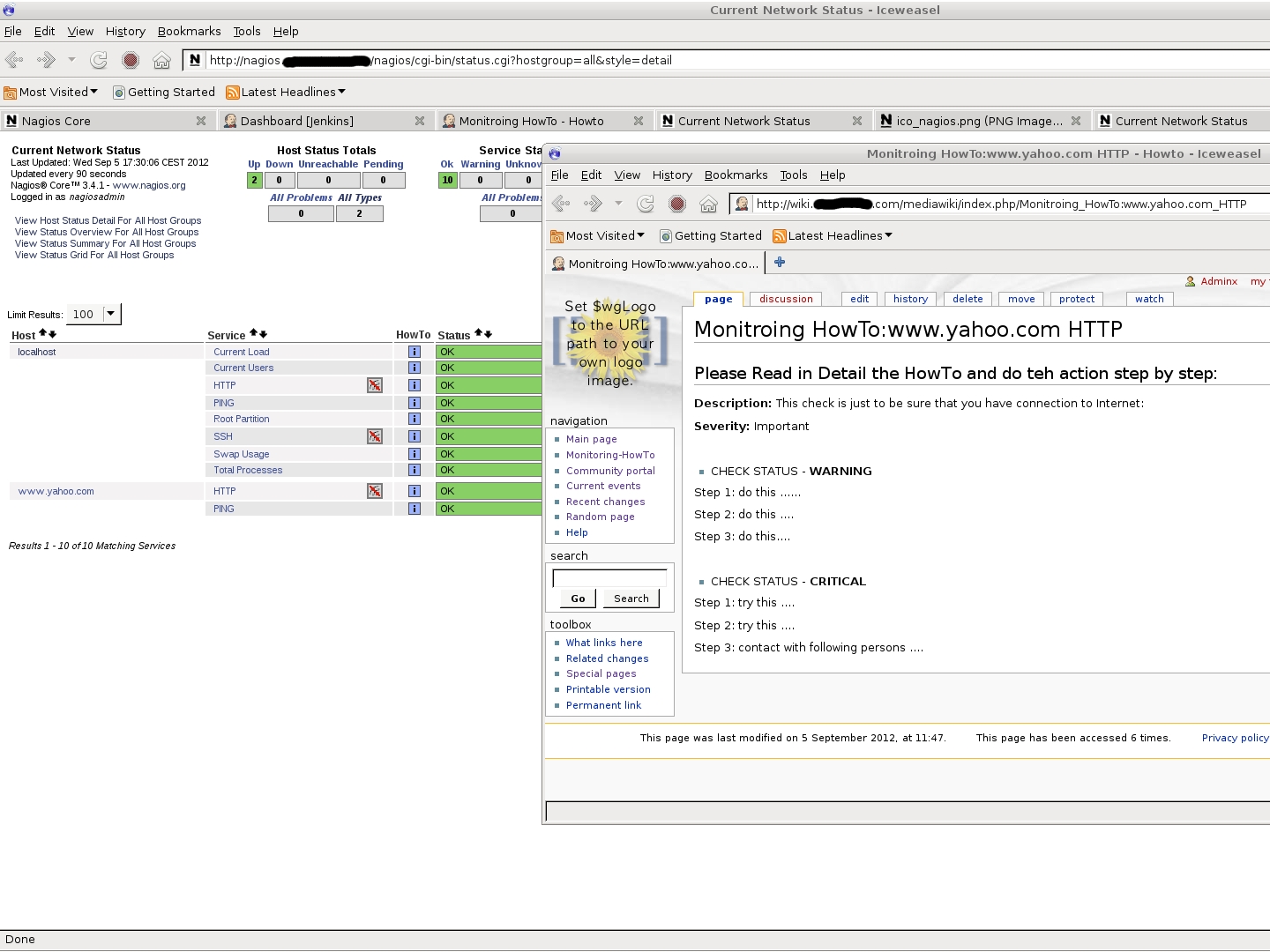Now everything is ready you can go to the nagios web interface and will see the icons linked with the documents on "Service Status Details For All Host Groups" page.