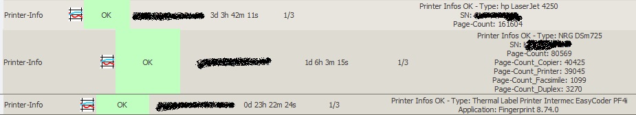 Following Infos will be collected: Modell, Serialnumber, Printed Pages (Perfdata)
